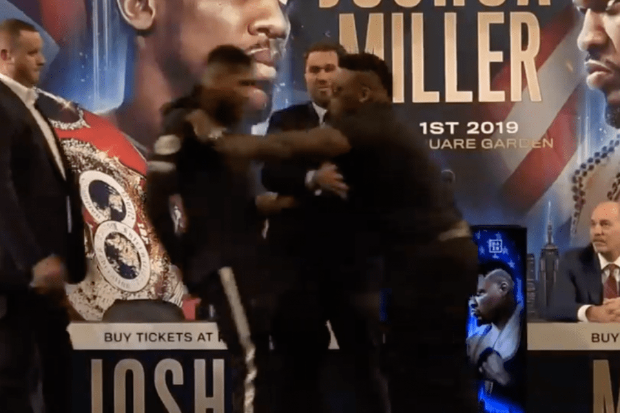 Jarrell Miller got under Anthony Joshua's skin at the press conference this morning.